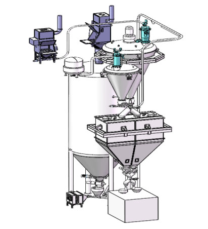 一、獨特的反吹機構,可有效避免物料浪費并自動清潔濾芯;